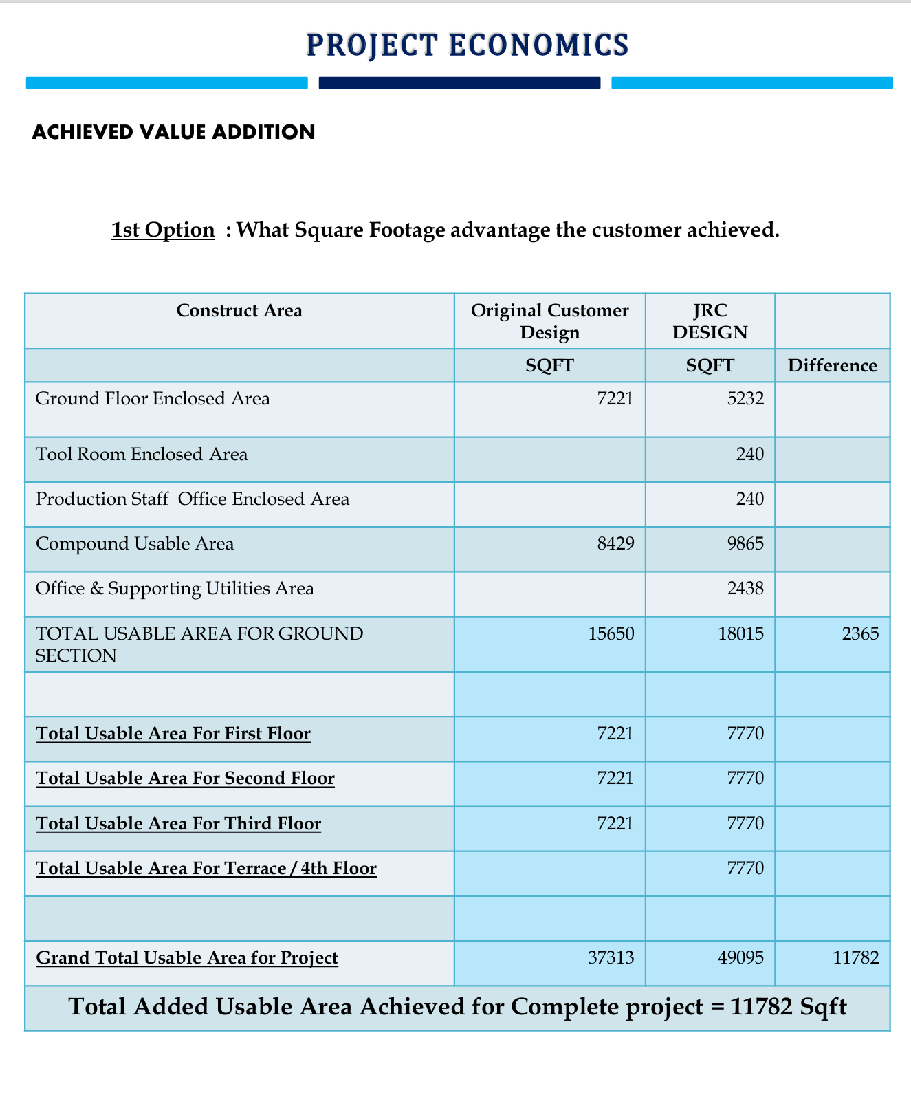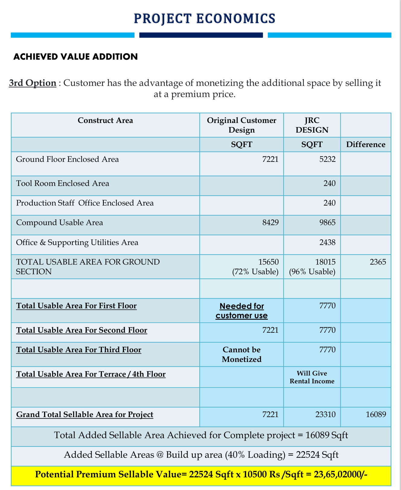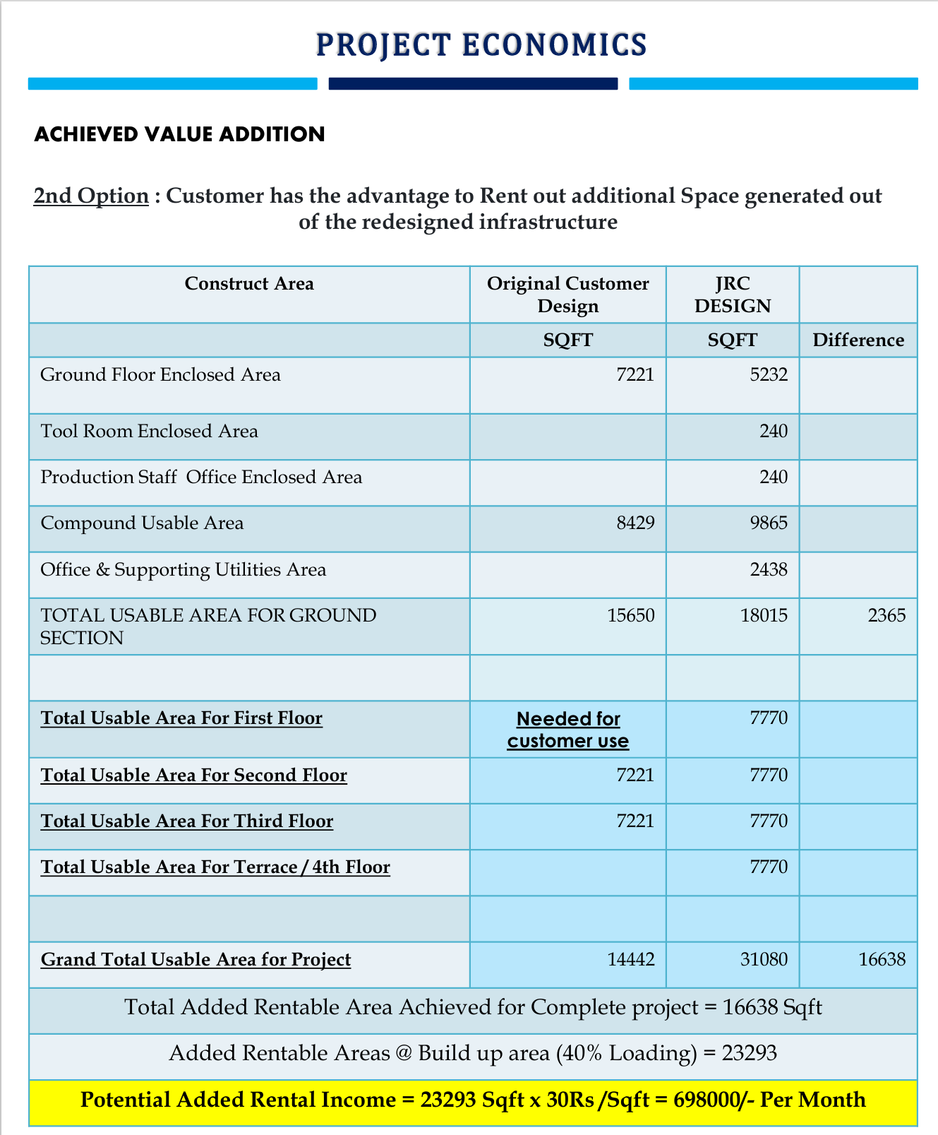 2nd Option : Customer has the advantage to Rent out additional Space generated out of the redesigned infrastructure